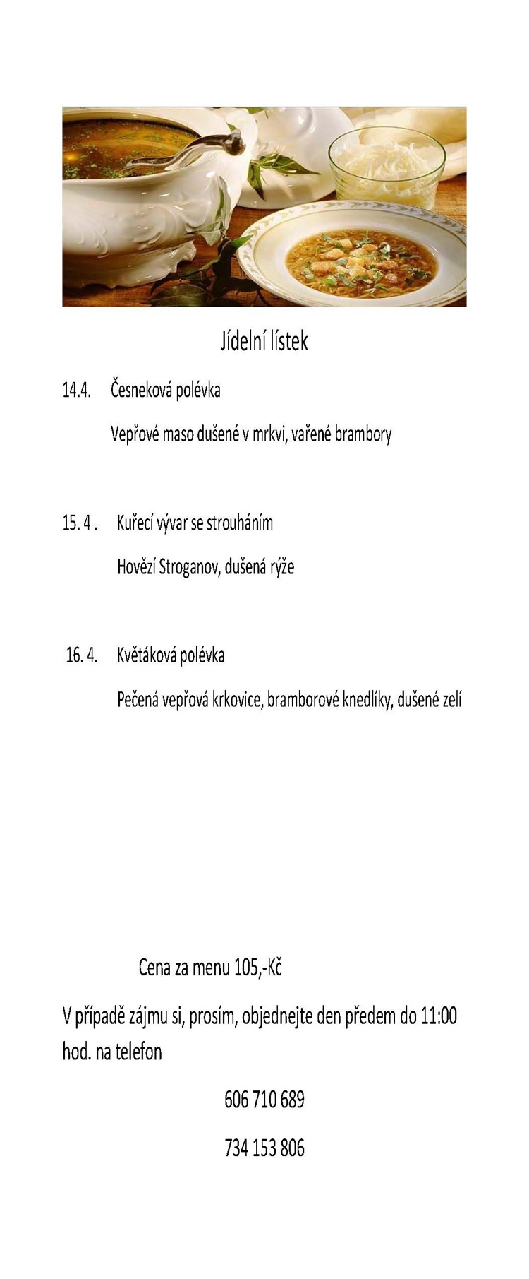 Objednávky vyřizujte na tel.: 606 710 689 nebo 734 153 806, paní Jana Vosiková.