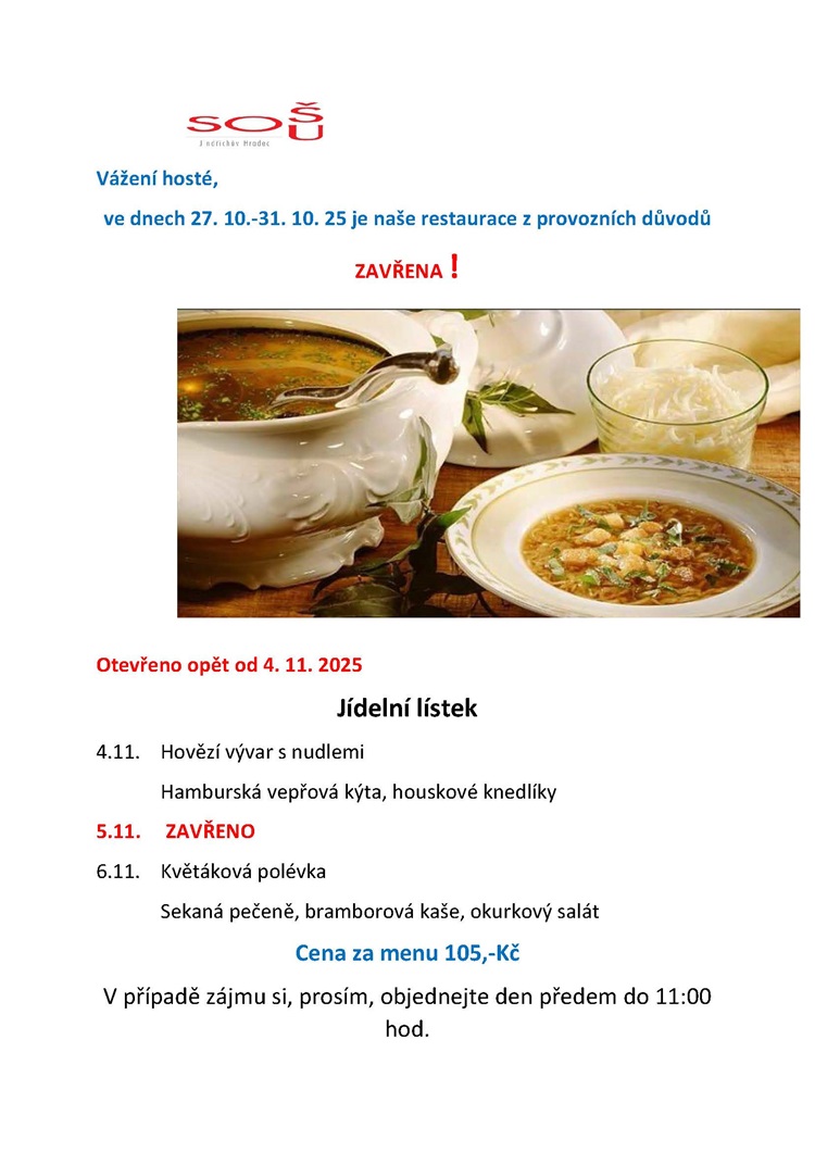 Menu na 4. a 6. 11. 2025. října 2025: